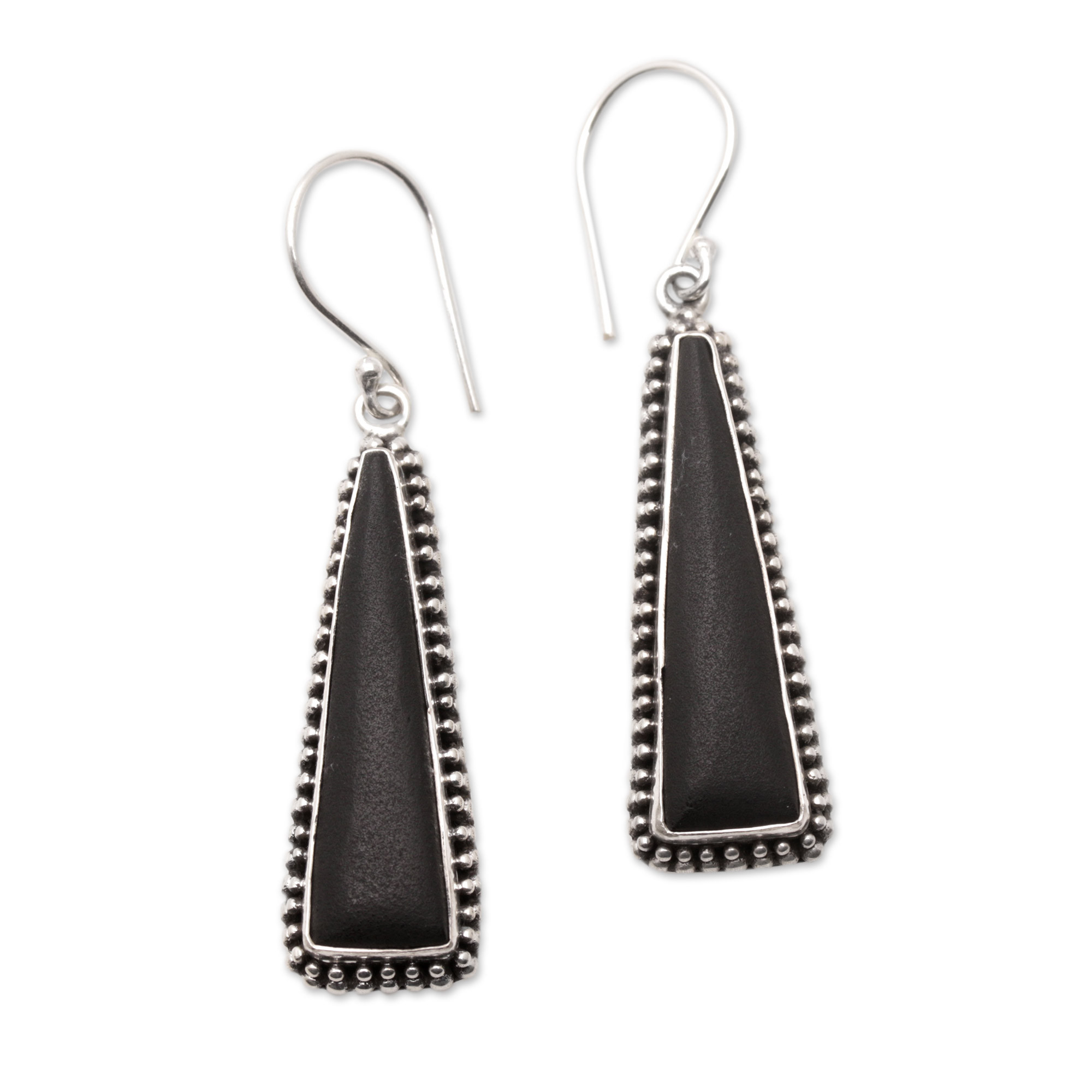 Onyx dangle earrings, 'Beautiful Shadow'