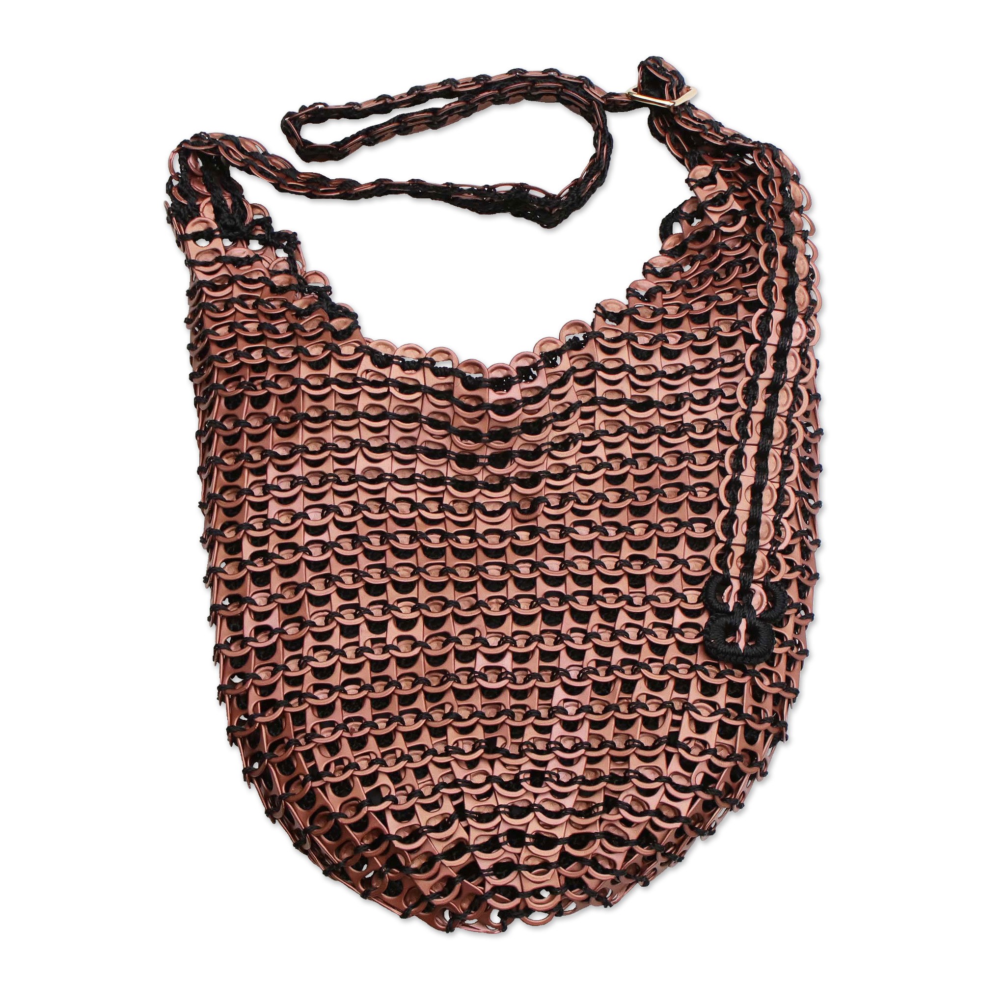 Recycled Aluminum Pop-Top Hobo Handbag from Brazil, 'Coppery Companion'