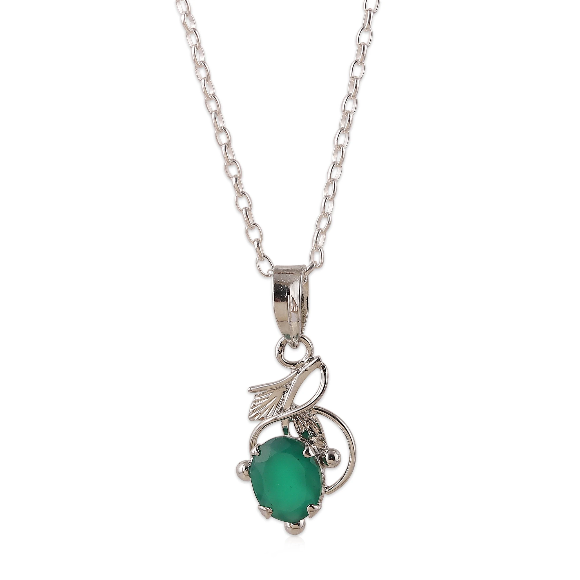 Six carats of lustrous green onyx cascade like emerald dewdrops from rhodium-plated sterling silver tendrils in this breathtaking jewelry set presented by India's Alok Jain. The pendant necklace becomes a focal point of sophisticated charm while the matching dangle earrings mirror the same botanical motif with fluid movement. Rhodium plating shields the sterling silver base with mirror-bright protection, ensuring these precious stones maintain their radiant glow for years to come.