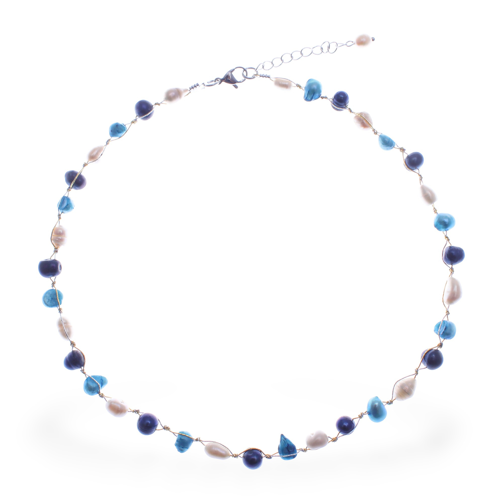 Semibaroque Potato and Round Cultured Pearl Beaded Necklace, 'Oceanic Elegance'