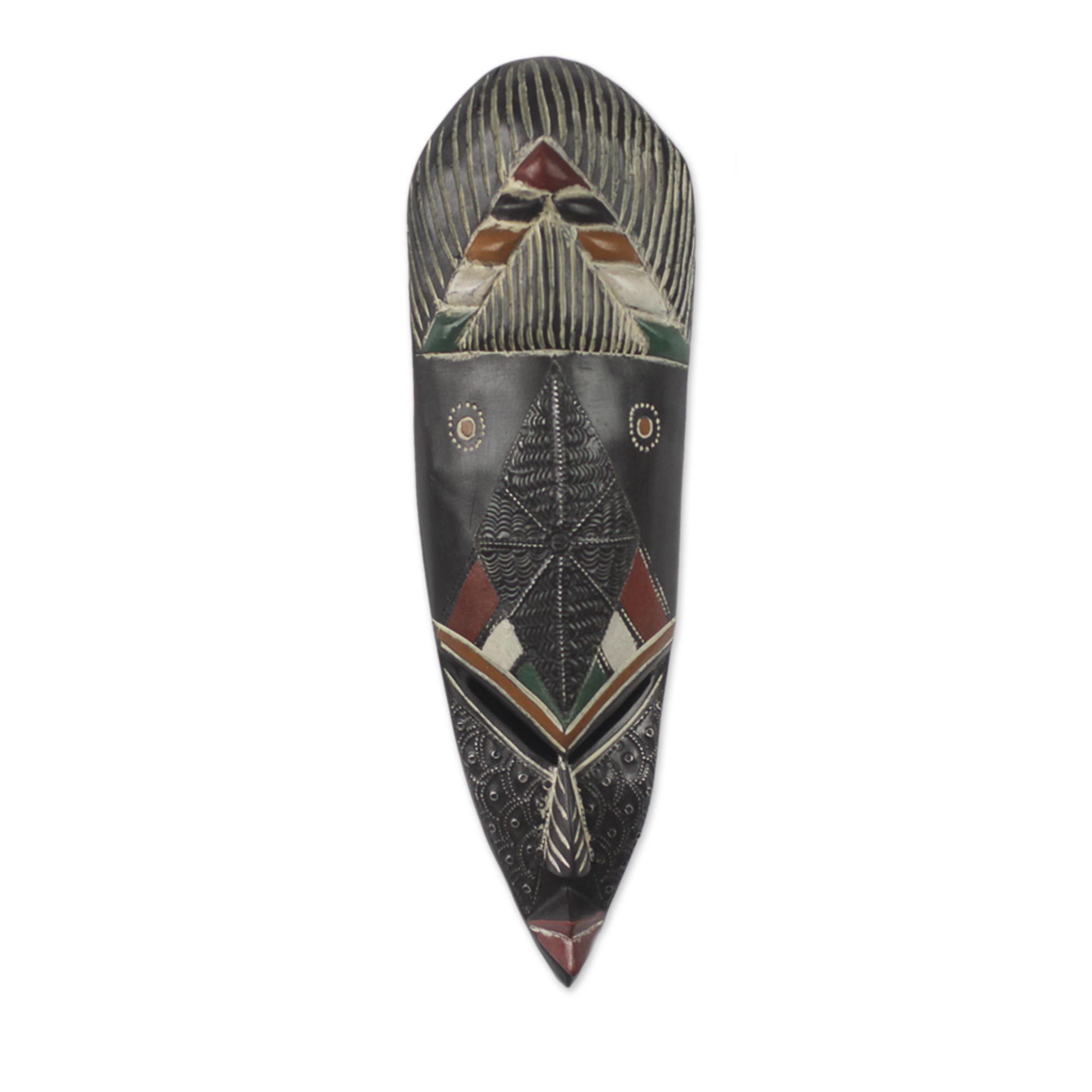 Sese Wood and Aluminum Wall Mask Hand Carved in Ghana, 'Ghanaian Nhyira'