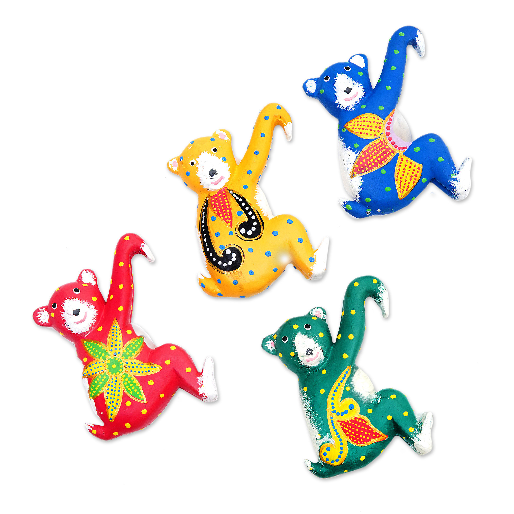 Set of 4 Hand-Painted Tropical Albesia Wood Bear Ornaments, 'Island Bears'