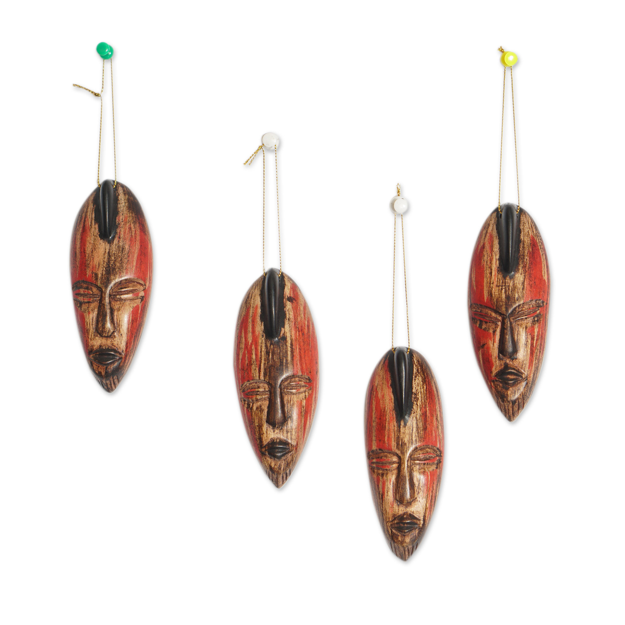 Set of 4 Handcrafted Black and Red Sese Wood Ornaments, 'Intense Facets'