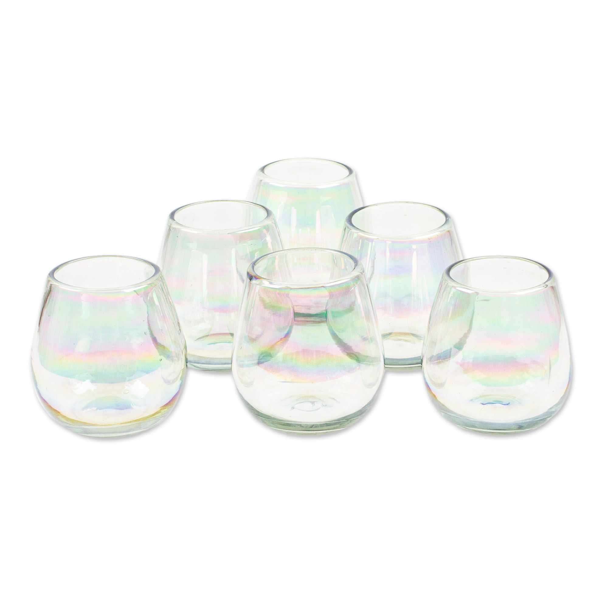 Set of 6 Clear Handblown Stemless Wine Glasses from Mexico, 'Ethereal Freshness'