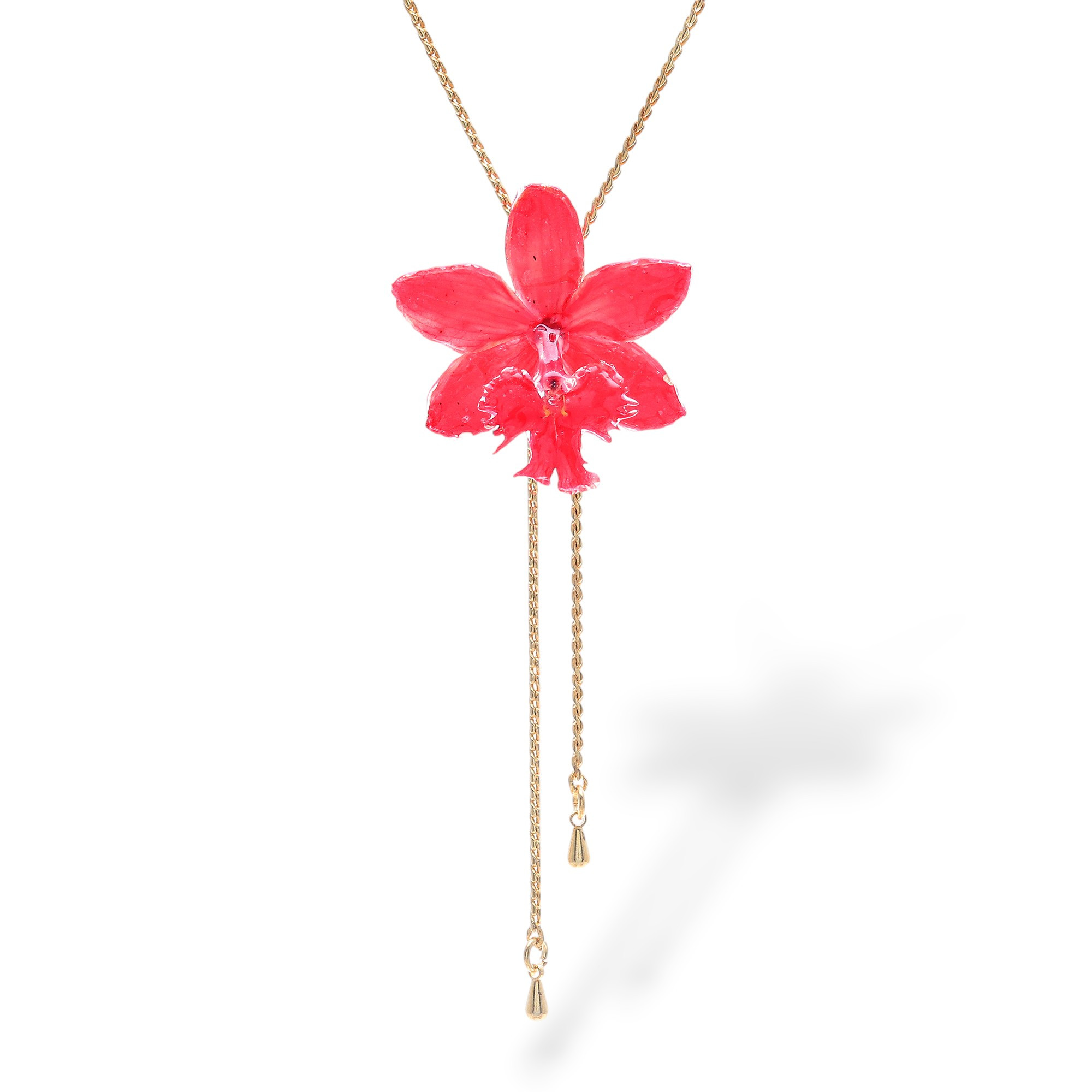 Spring-Inspired 22k Gold-Plated Pink Orchid Lariat Necklace, 'Luxurious Pink'