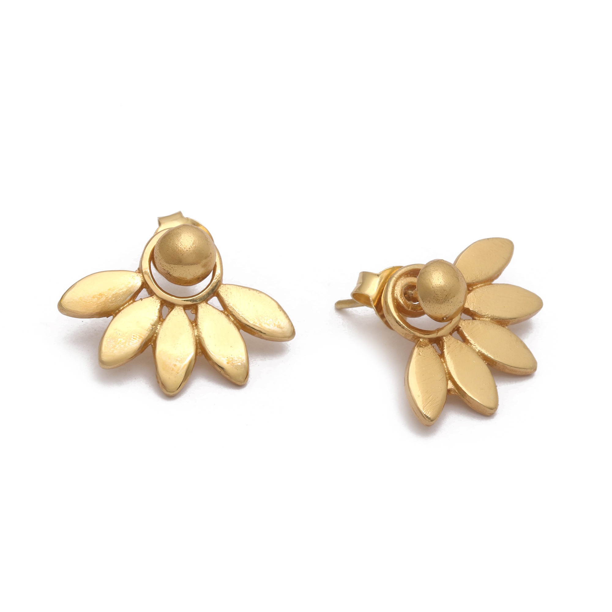 As bright as a primaveral morning in the Balinese region, these 18k gold-plated drop earrings are ready for a day of floral beauty. Made by Dewa Nyoman Oka, each earring is composed of a stud pendant and a floral piece, enhanced by a high-polish finish. The pair can also be worn as ear jackets for a unique illusion.