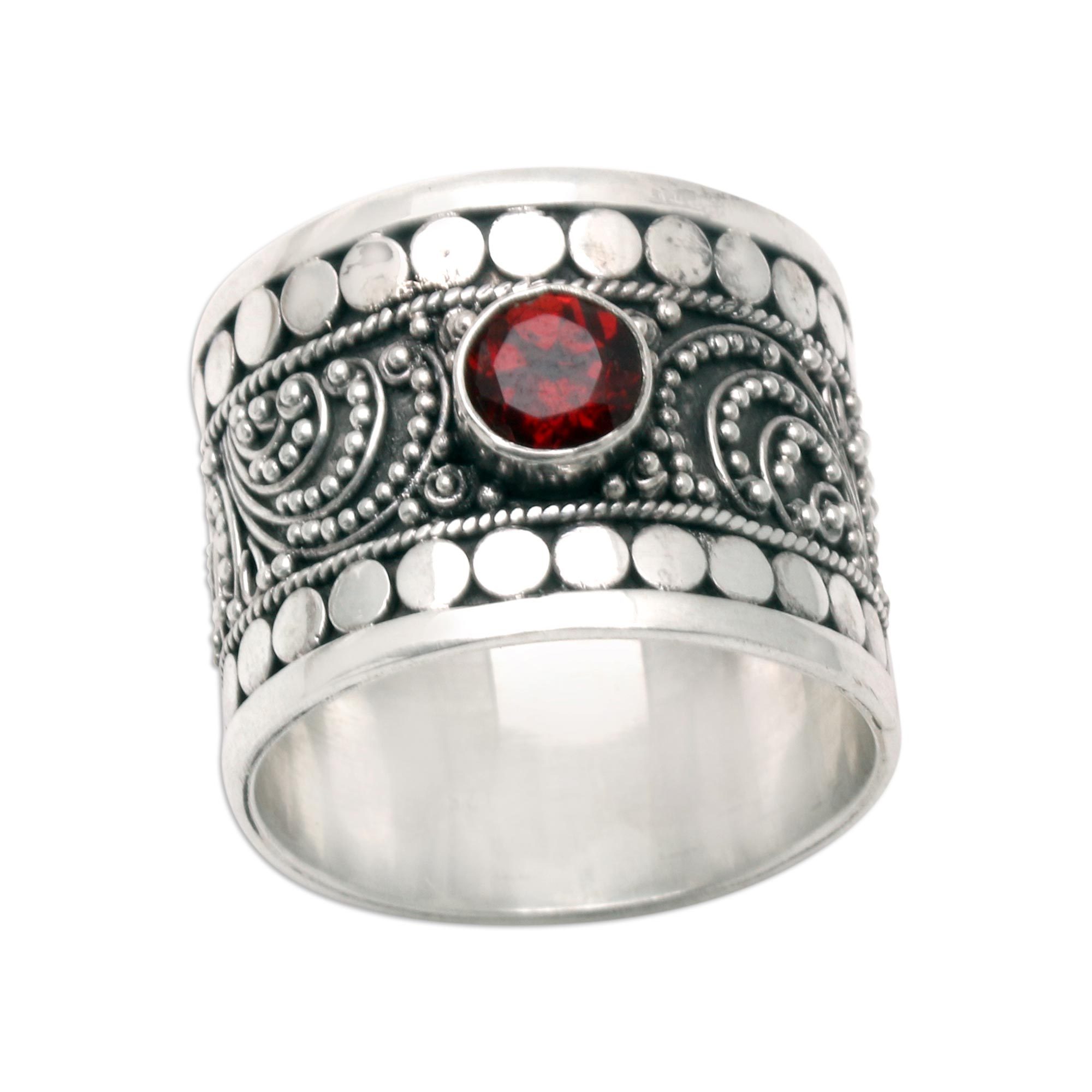Sterling Silver and Garnet Band Ring, 'Young People'