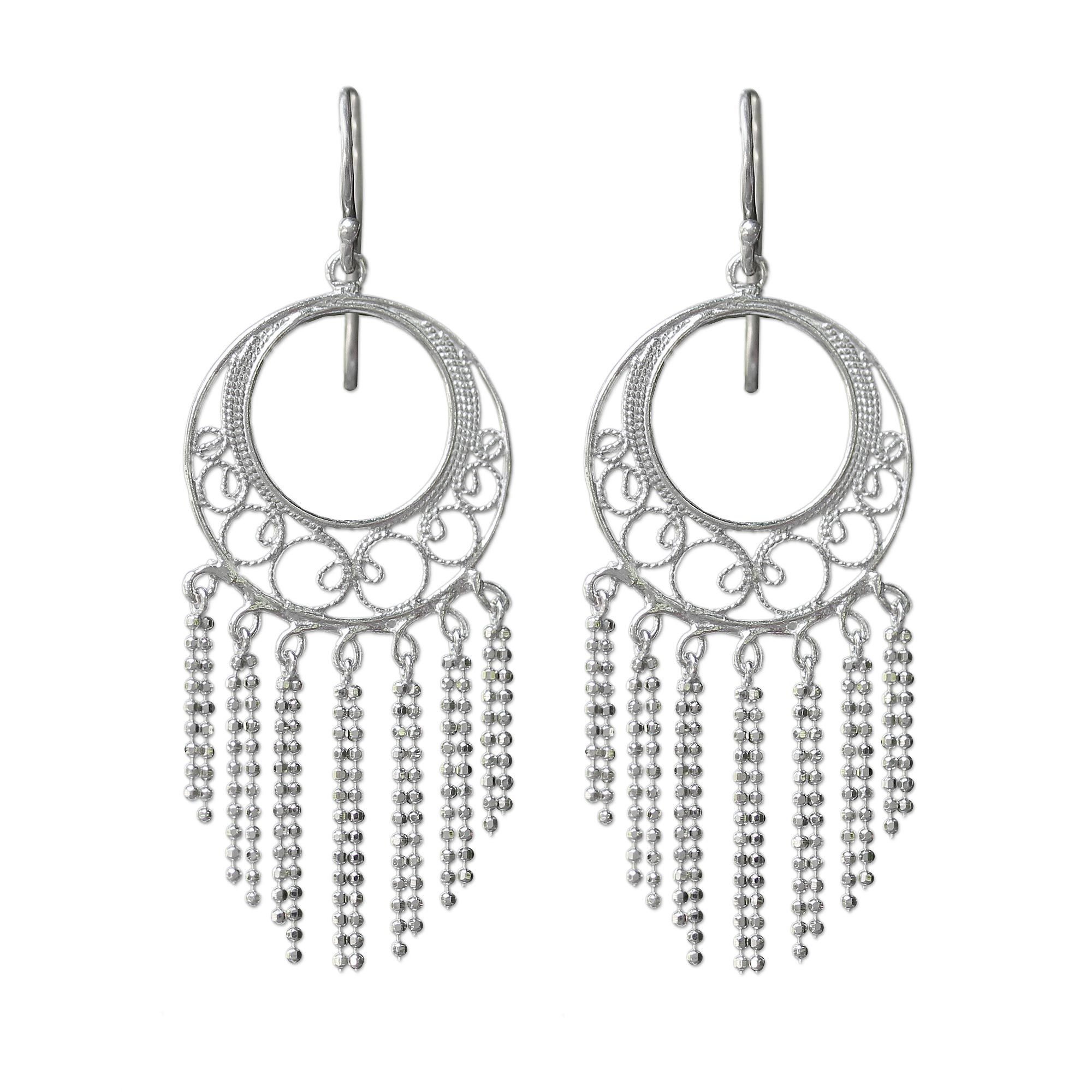 Sterling Silver Chandelier Earrings from Thailand, 'Raining Romance'