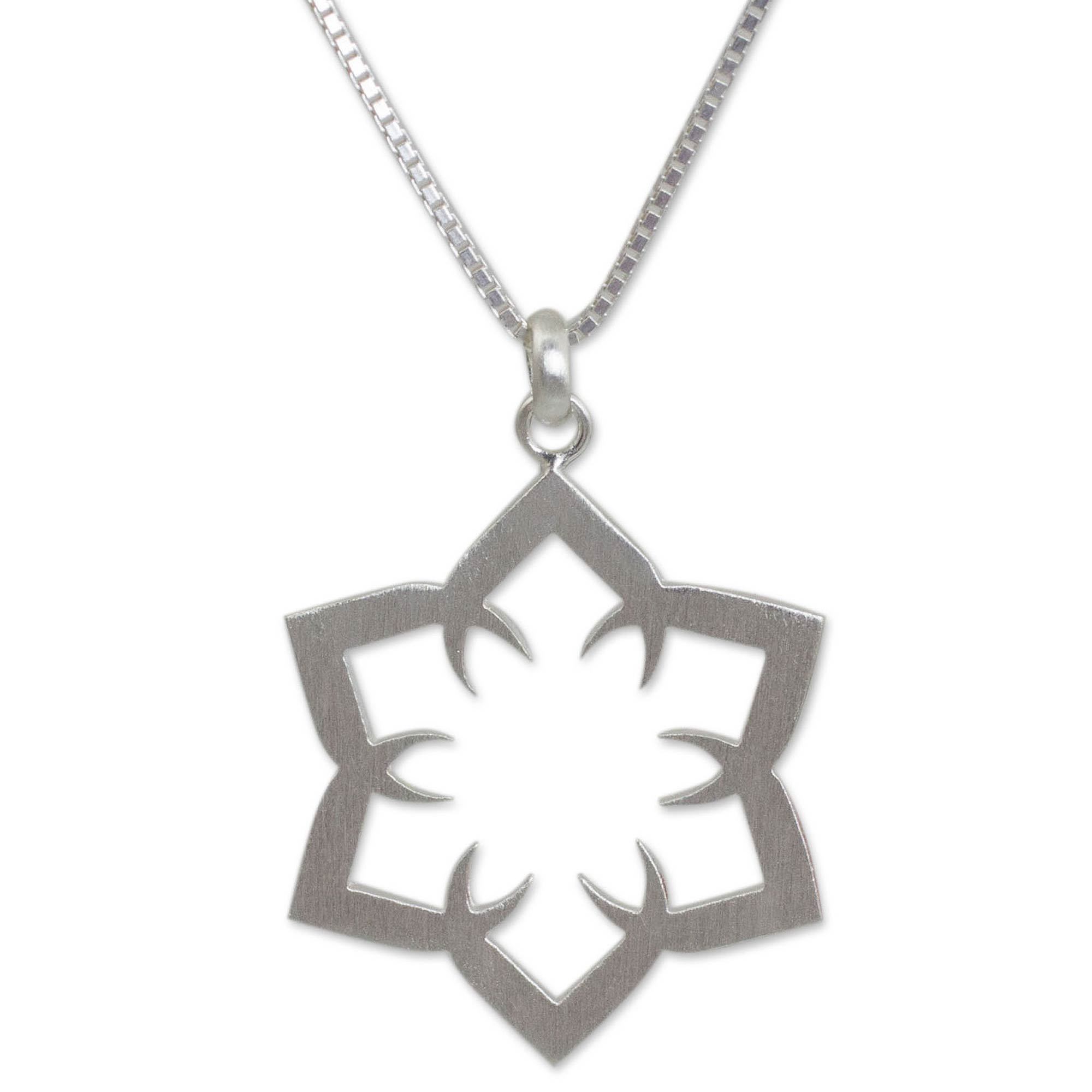 Sterling Silver Necklace Floral Jewelry from Thailand, 'Lotus Mirage'