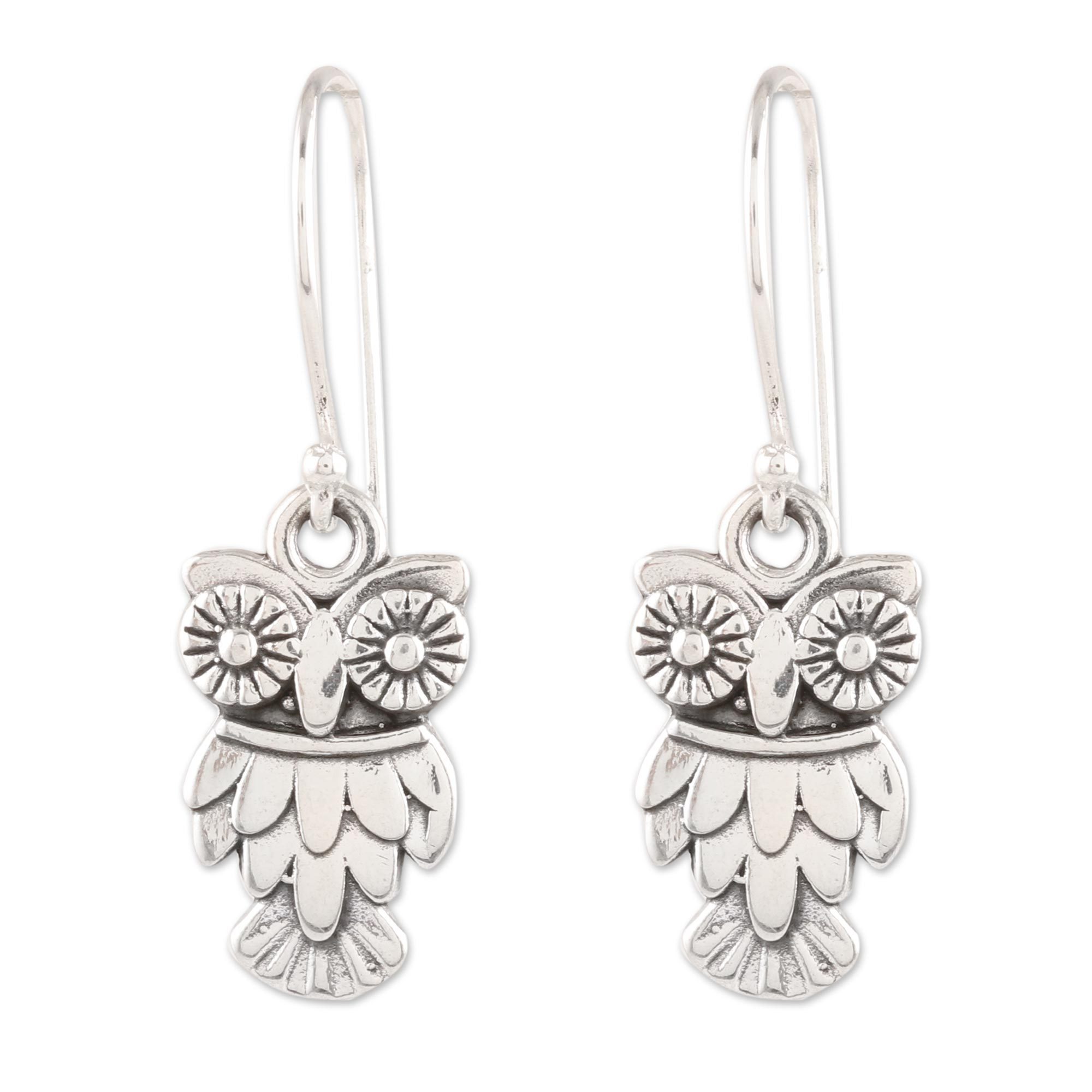 Sterling Silver Owl Dangle Earrings from India, 'Night Vision'