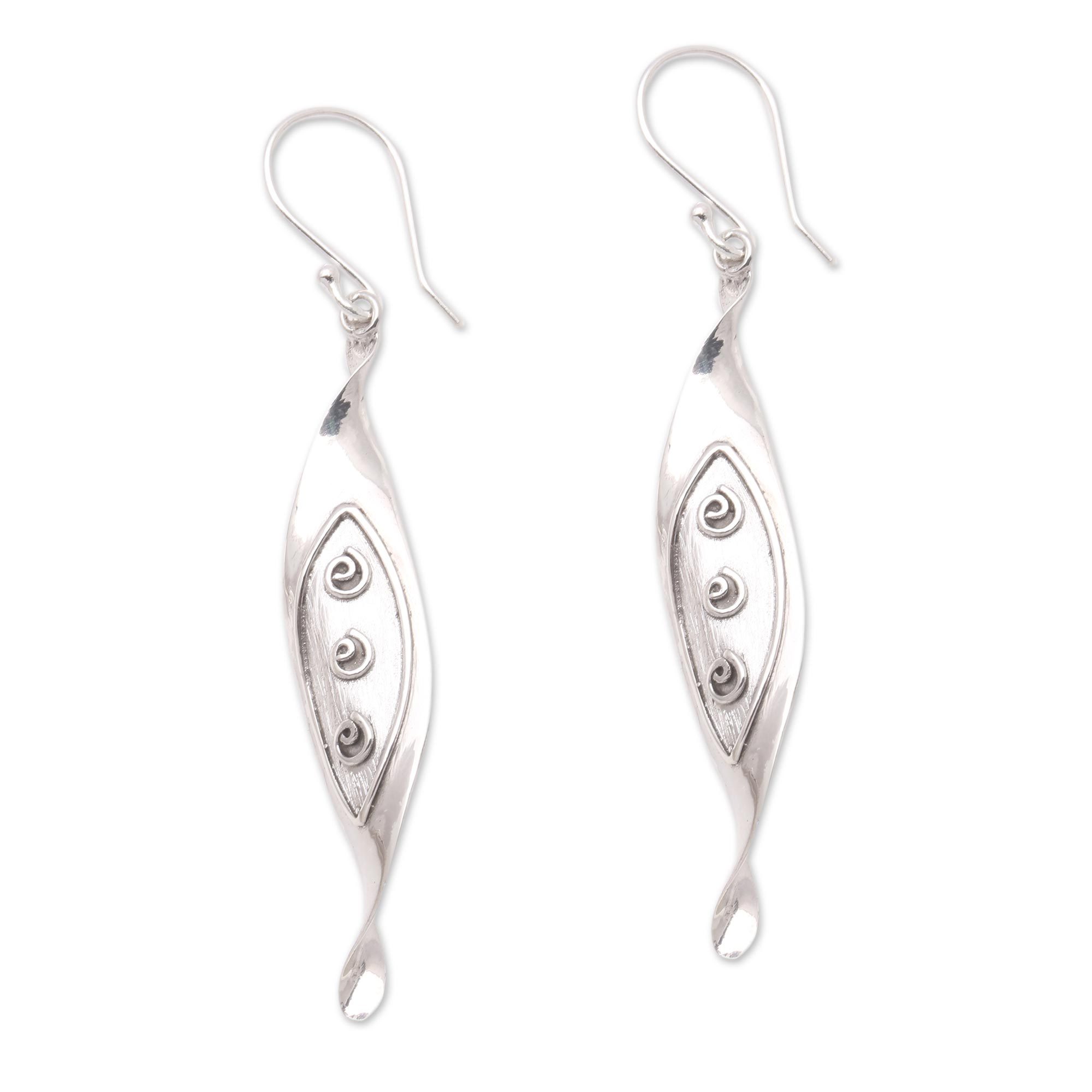 Swirl Pattern Sterling Silver Dangle Earrings from Bali, 'Leafy Shapes'