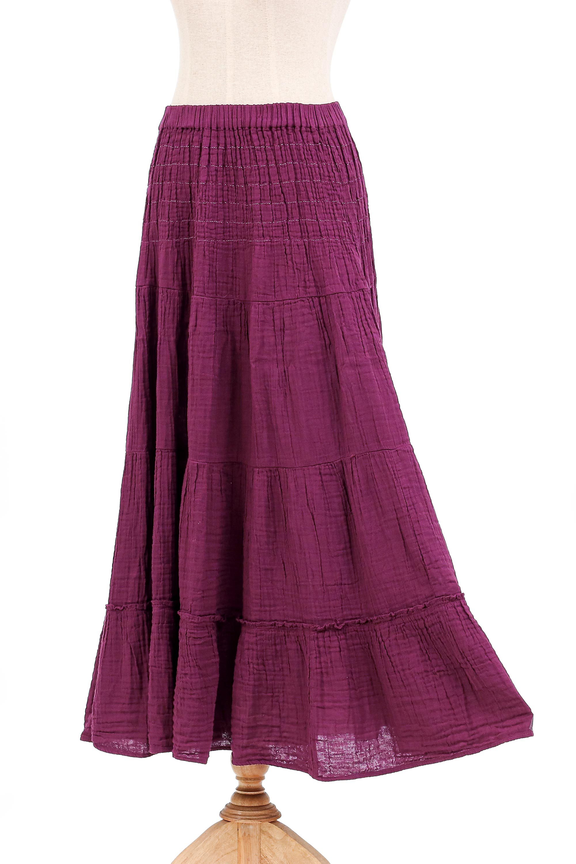 Thai Cotton Double Gauze Skirt, 'A Day Out in Mulberry'