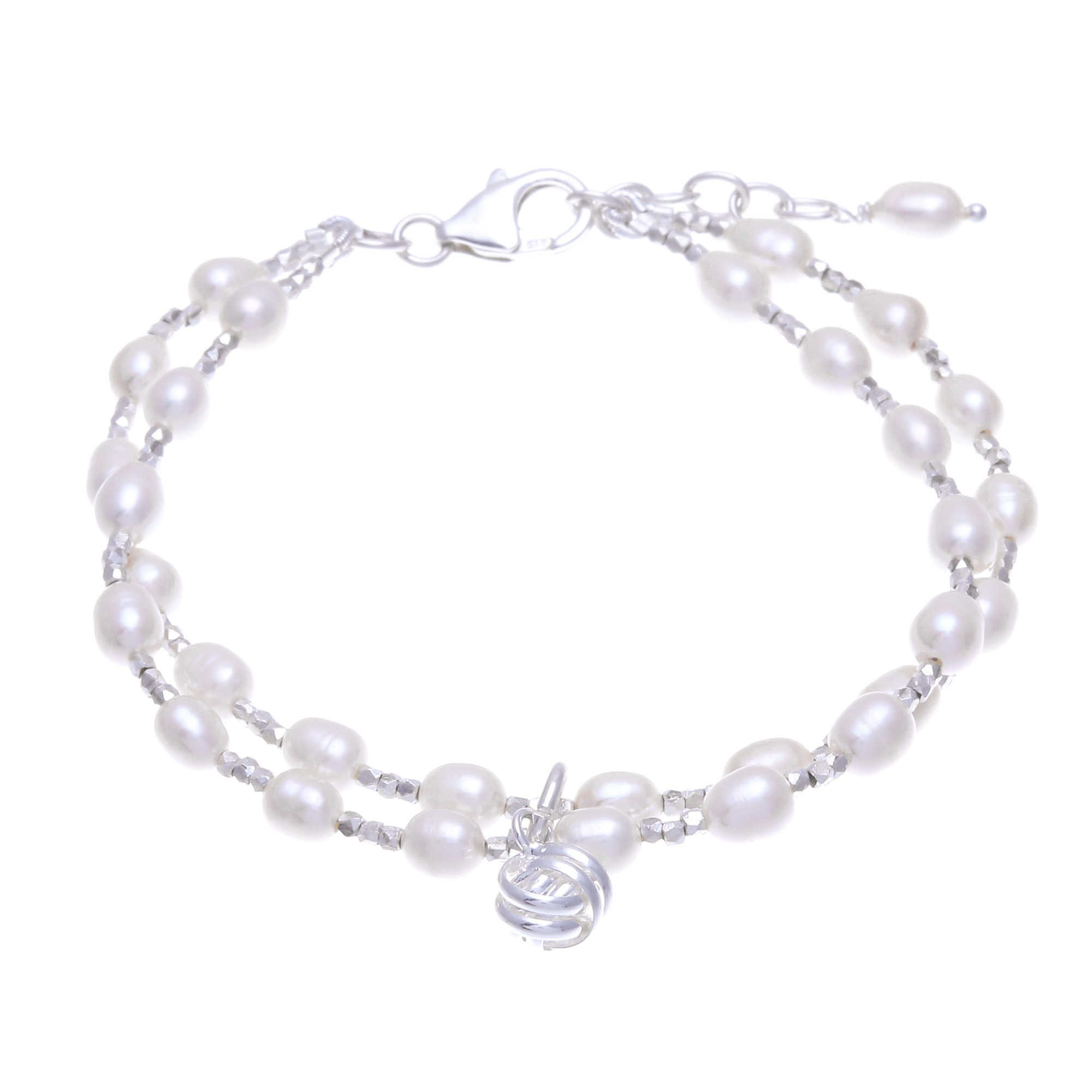 Thai Cultured Pearl Bracelet with Sterling Silver Pendant, 'The Promise'