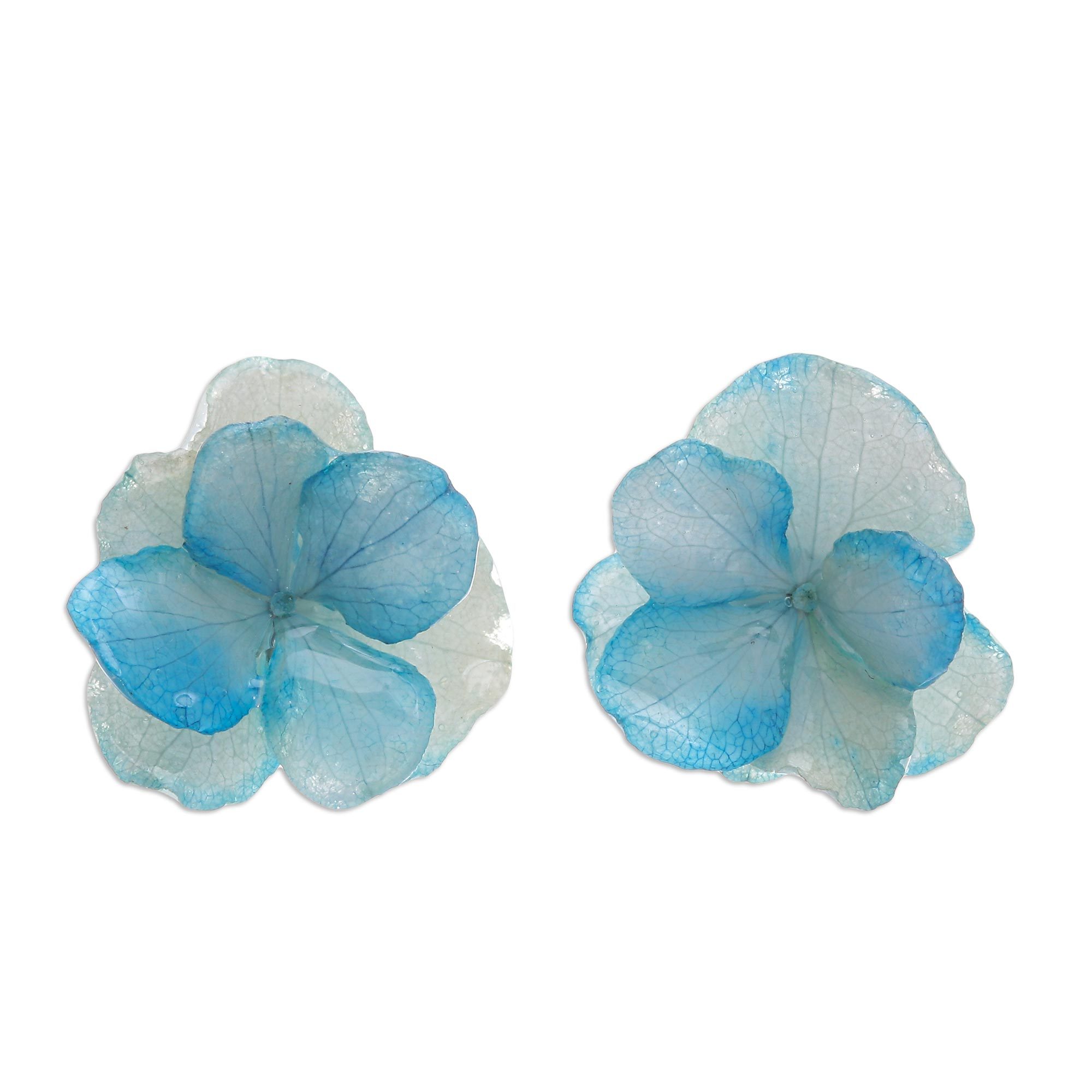 Thai Resin Coated Blue Hydrangea Bloom Post Earrings, 'Azure Hydrangea'