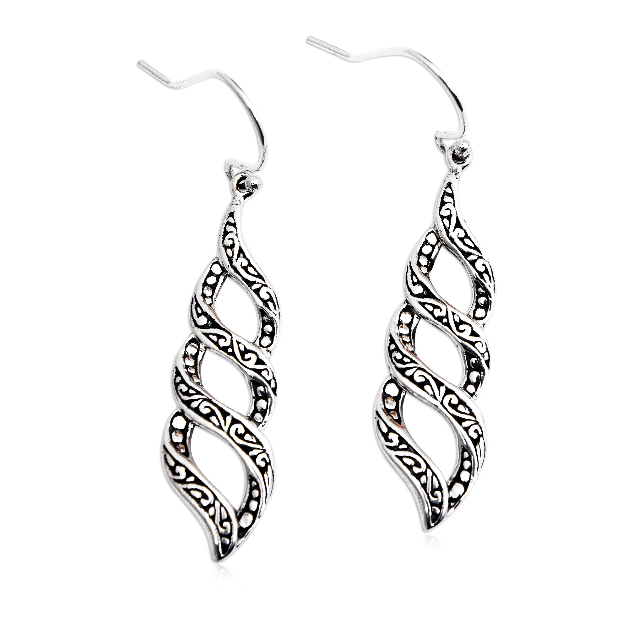 • Sterling silver dangle earrings, 'Twist of Life' - Traditional Balinese Polished and Oxidized Dangle Earrings (image 2d) thumbail