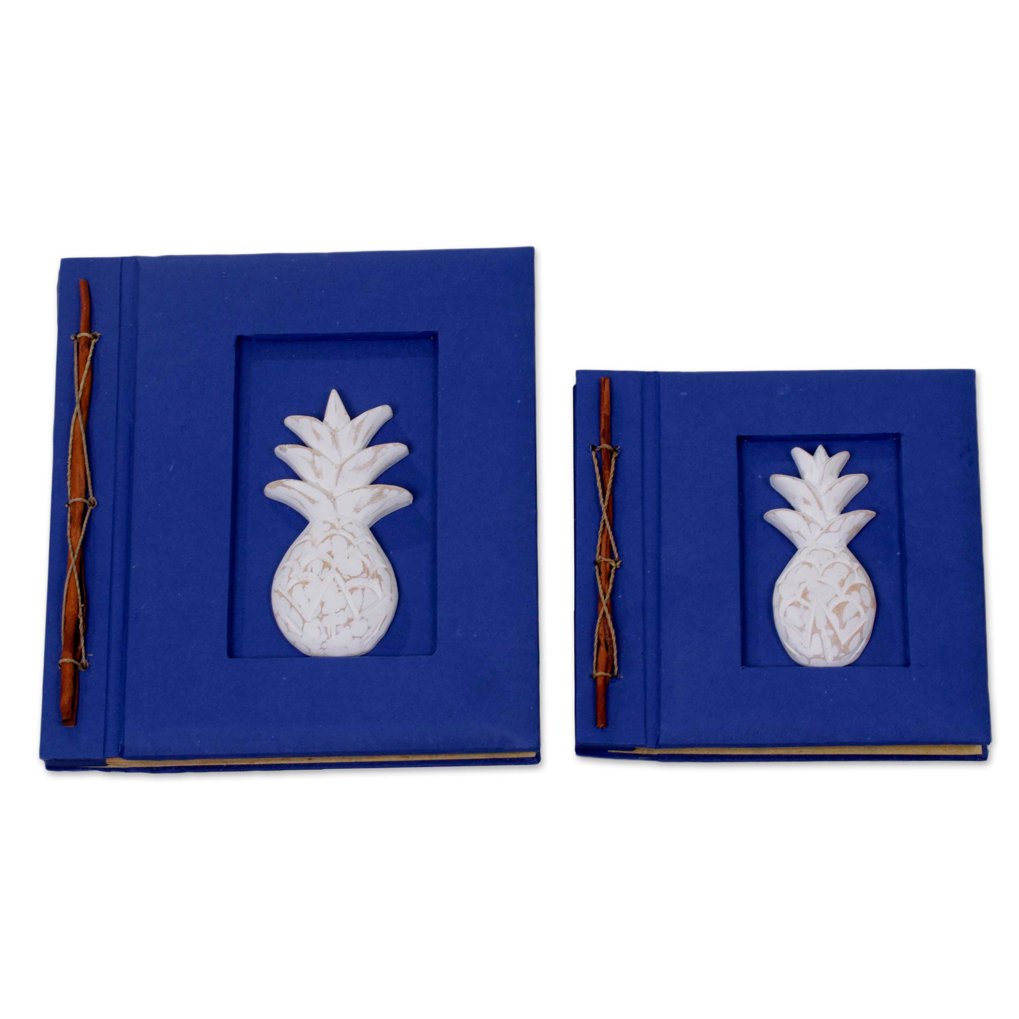 Two Albesia Wood Indonesian Pineapple Photo Albums in Blue, 'Pineapple Dreams in Blue'