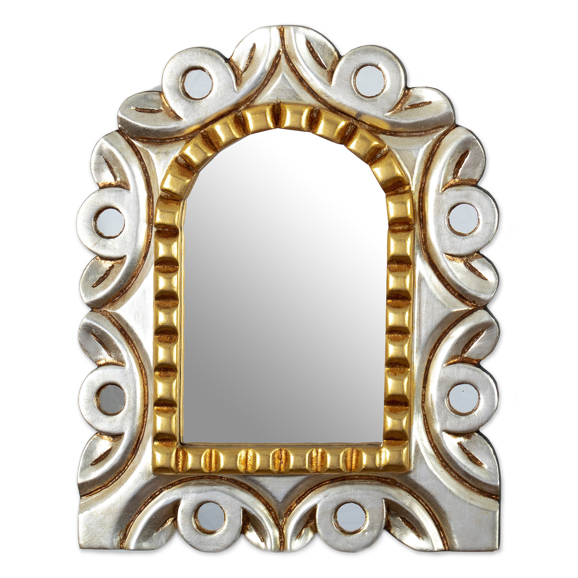 Window-Shaped Wood Wall Mirror with Bronze & Aluminum Leaf, 'Window'