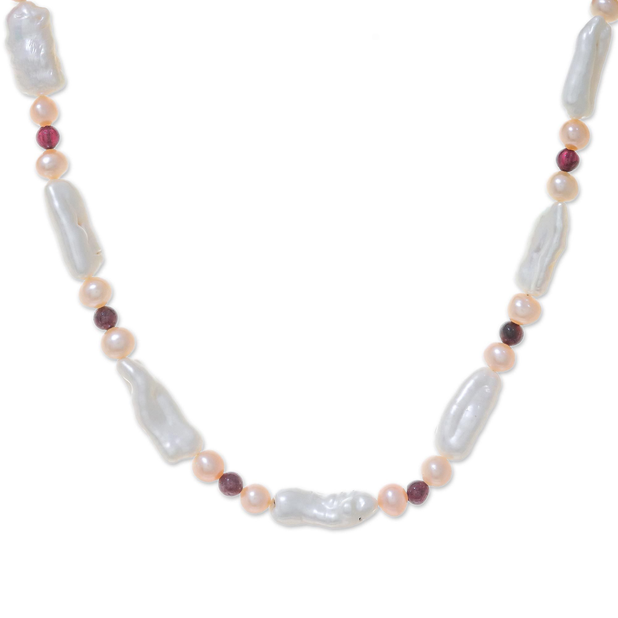 Women's Pearl and Garnet Necklace, 'Passion and Purity'