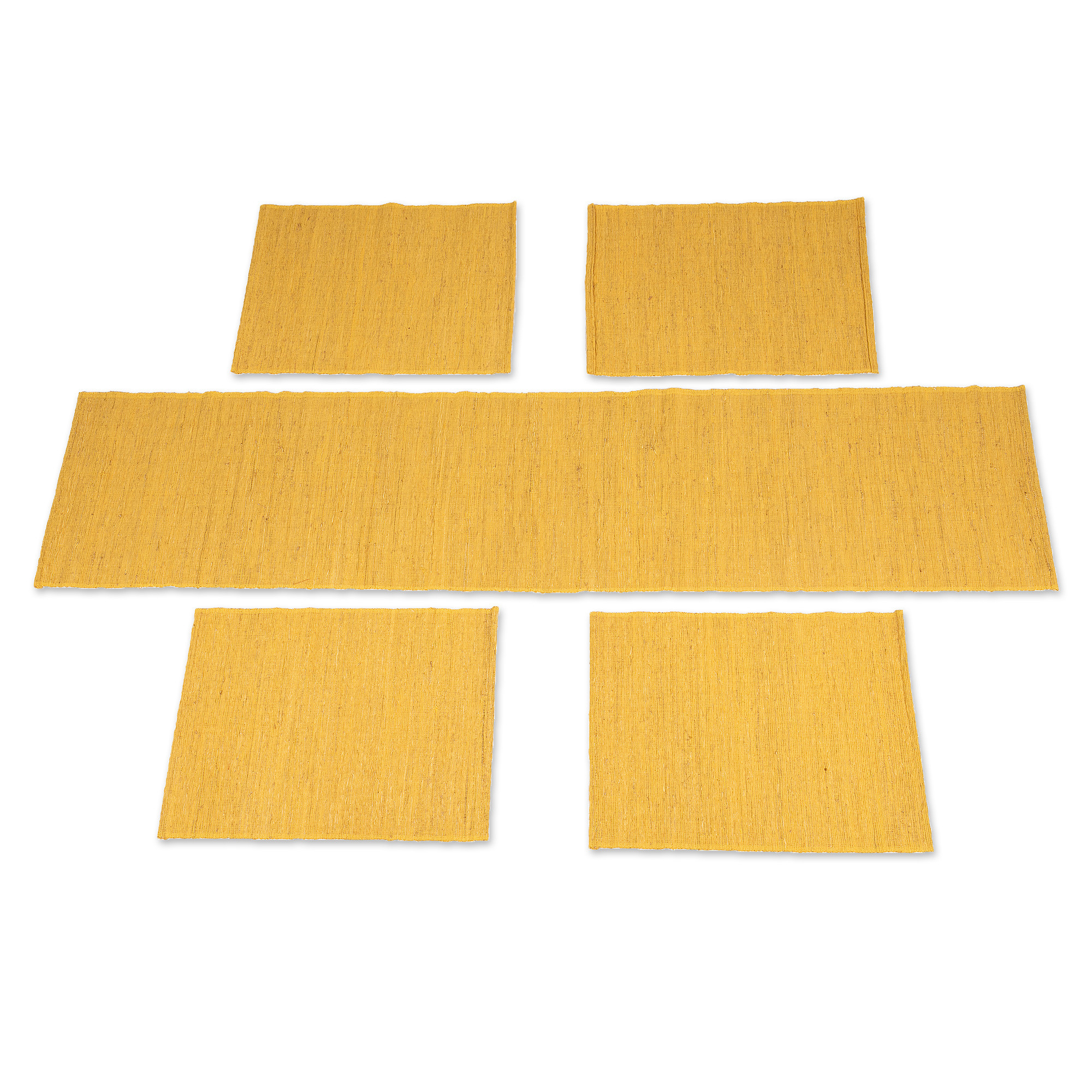 Yellow Cotton Blend Table Runner and Placemats (5 Pieces), 'Yellow Aroma'